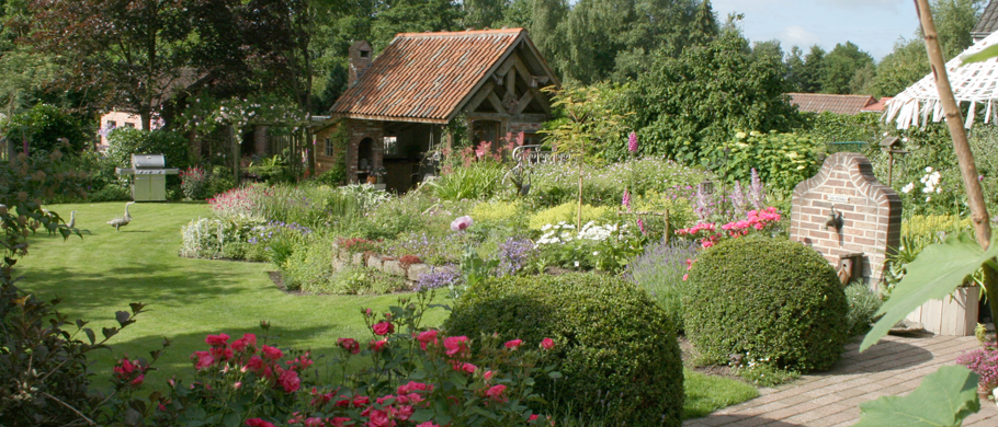 Een tuin met hier en daar een artistieke toets.